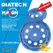 Egyedi forma és az egyszeres szegmenssor biztosítja a csiszolás közben fejlődő hő és por elvezetését. Beton, márvány és gránit csiszolásához javasoljuk. Porelszívásos gépekhez is alkalmazható. Maximális fordulatszám szárazon: 10.000 f/p, vizesen: 2.000-4.000 f/p.