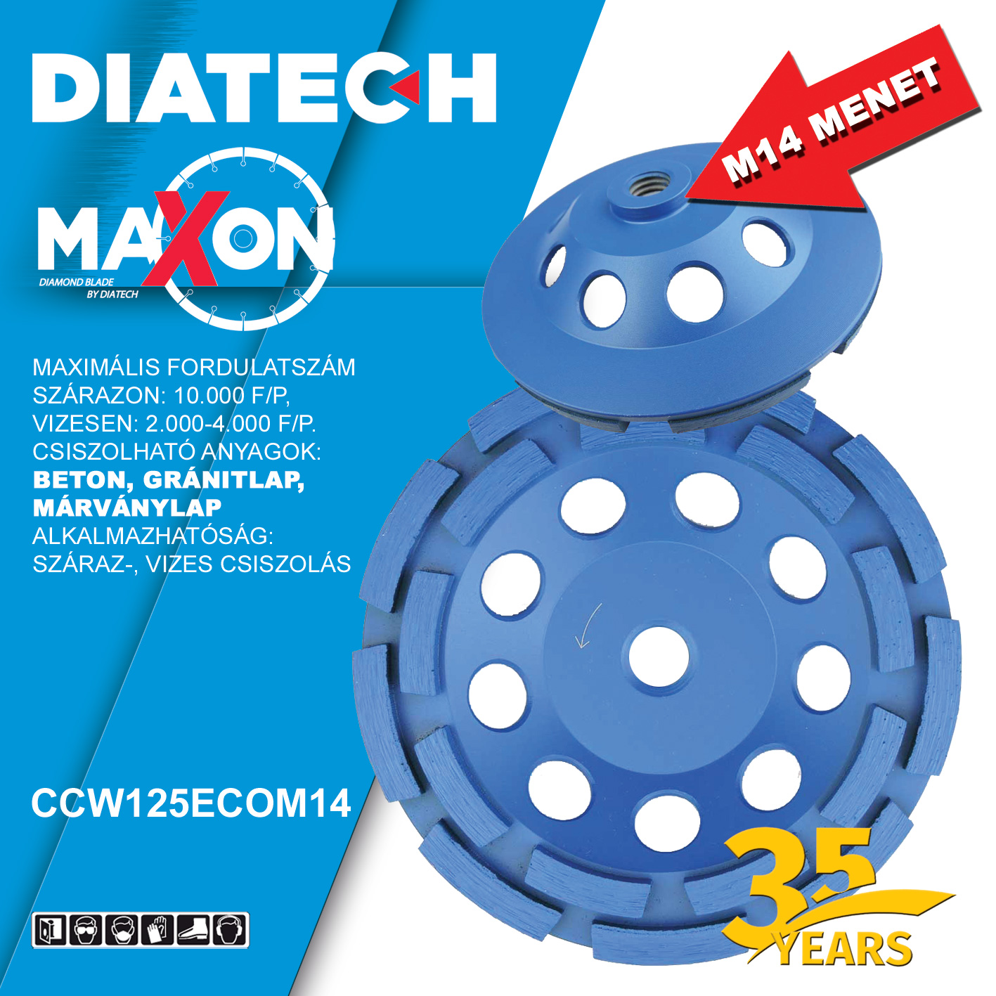 CCW-ECO 125-M14 kétsoros gyémánt csiszolótárcsa, kék